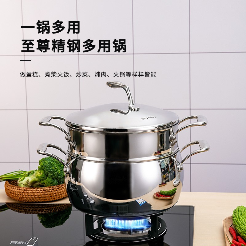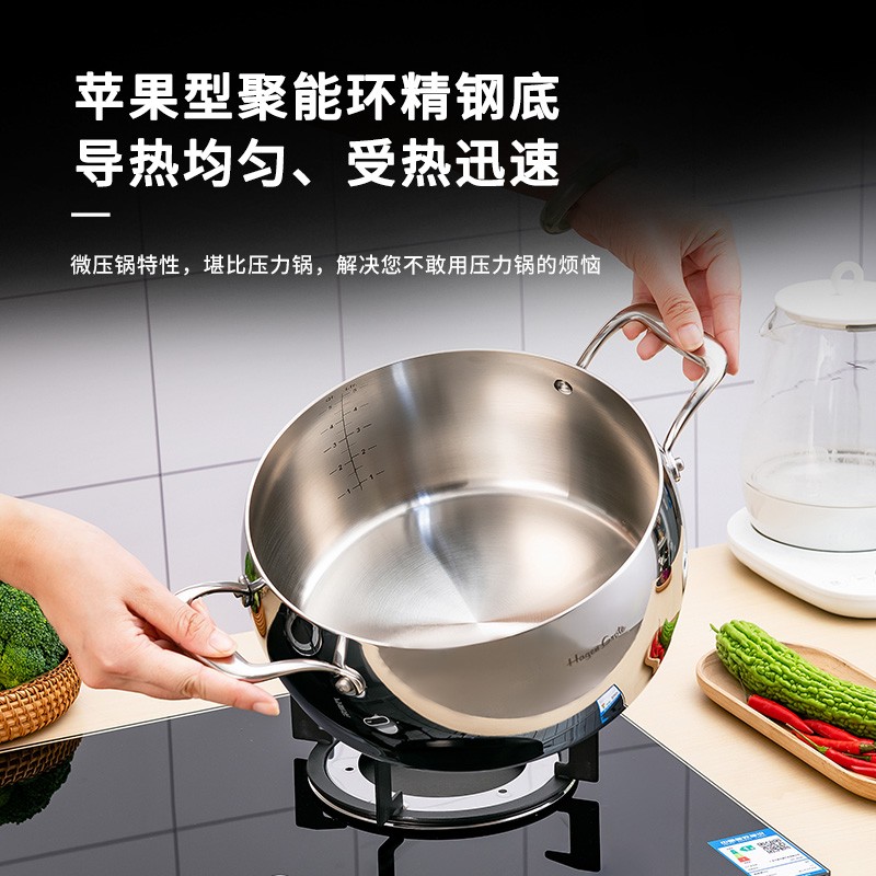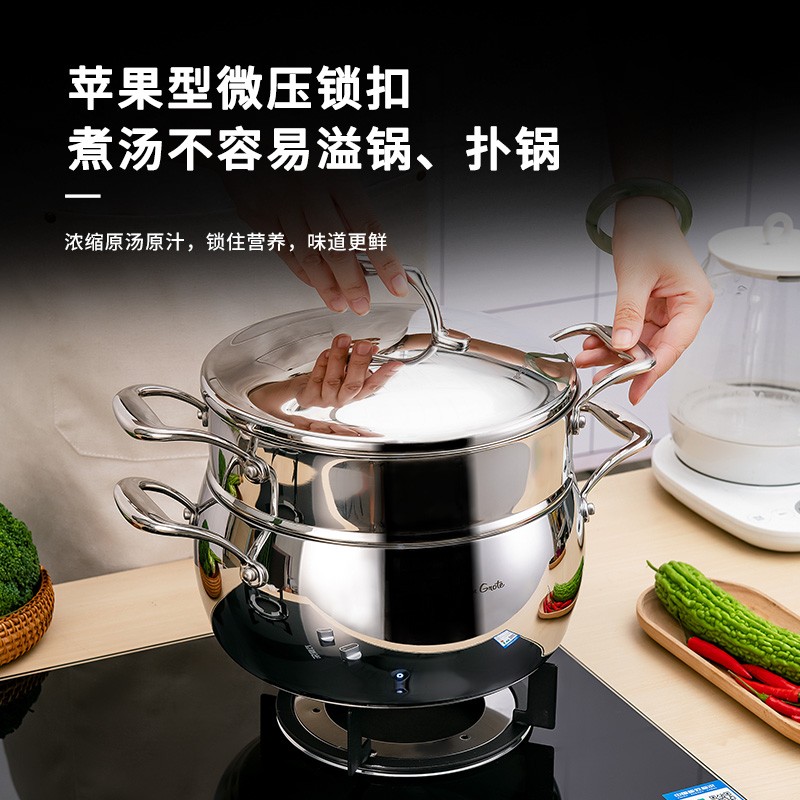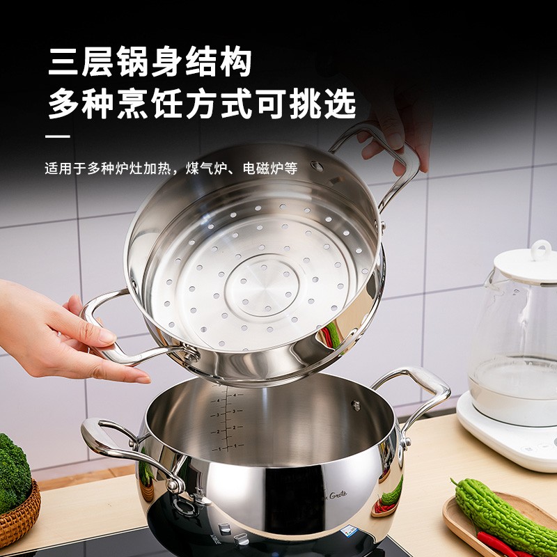 Robuchon 德国高端苹果微压汤锅18 10不锈钢24cm带蒸屉五层钢